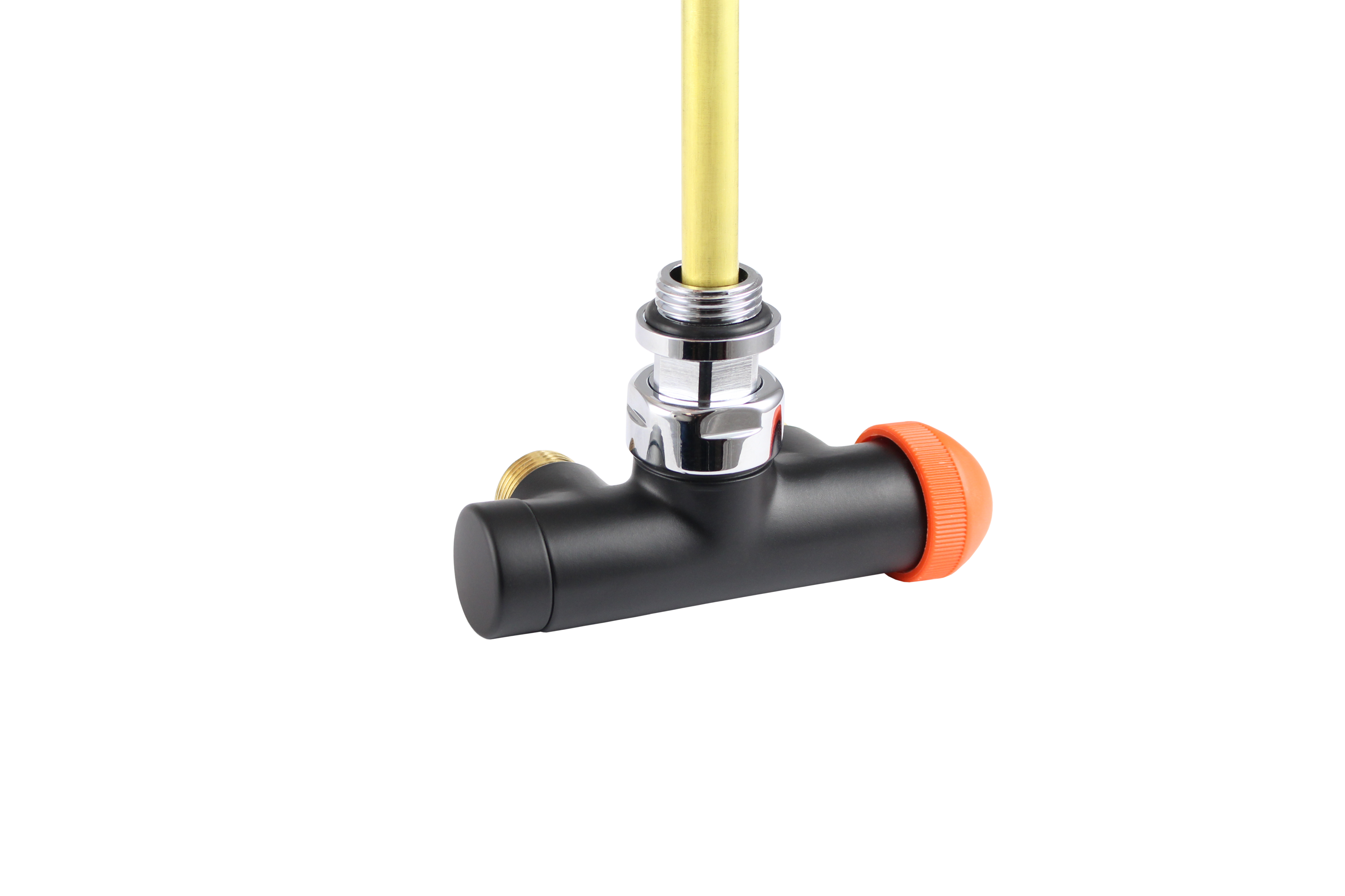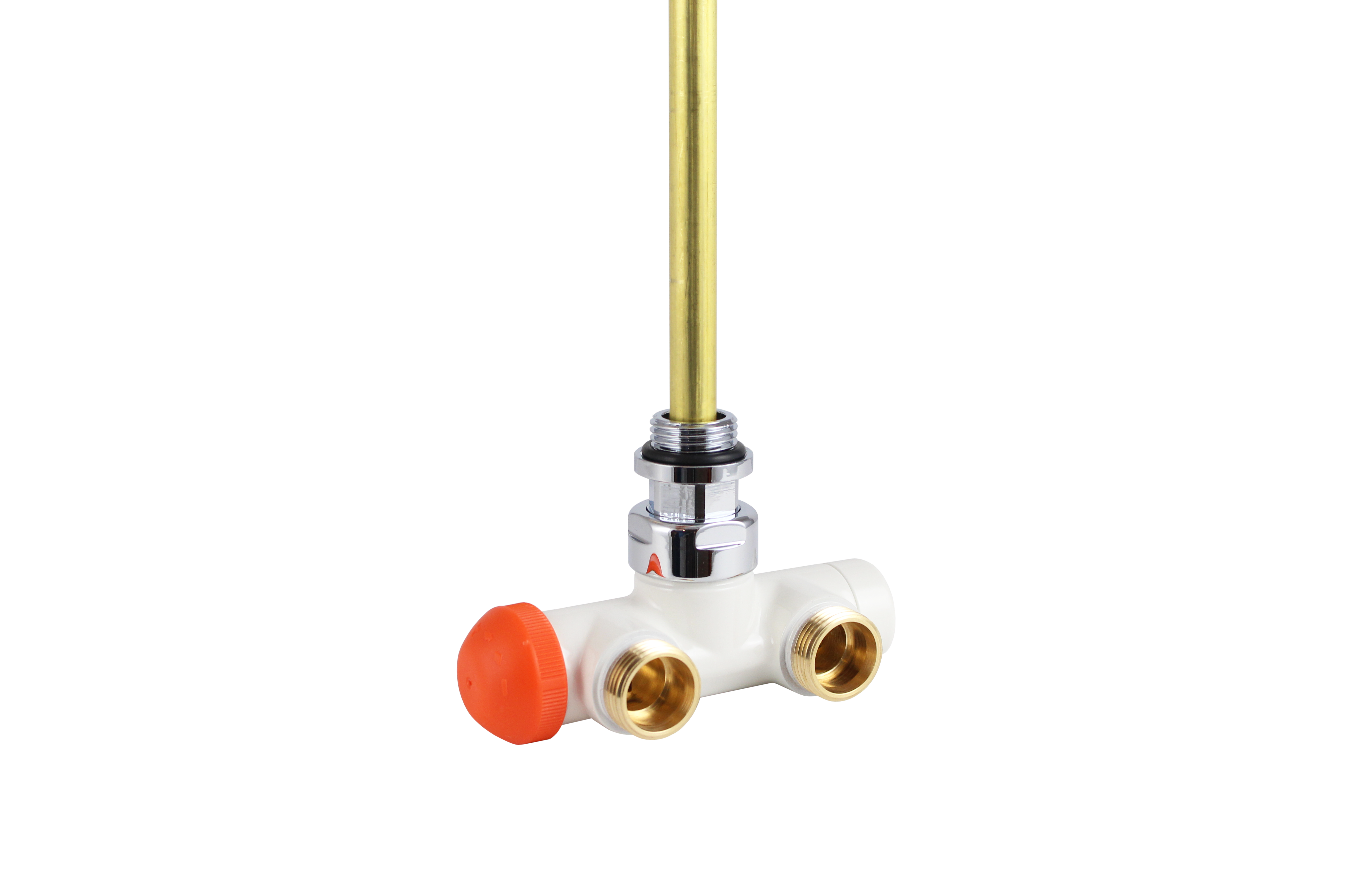 Кутовий 4-ходовий клапан для 2-трубних систем, із занурювальною трубкою (L = 290 мм, Ø11 мм). Міжосьова відстань – 50 мм. Різь підключення термостатичної головки – М28 х 1,5. На подавальному трубопроводі – вбудований запірний клапан. На зворотному трубопроводи – кран-букса TS-98-V з плавним попереднім налаштуванням, яку можна перекрити за допомогою латунного ковпачка (1632930). Підключення до радіатора – хвостовик G ½” з ущільнювальним кільцем. Підключення хвостовика до клапана – накидна гайка G ¾”. Підключення до системи – зовнішня різь М22 х 1,5 з ущільненням під конус.