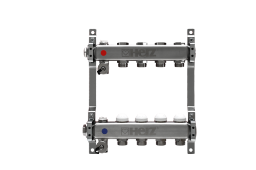 Матеріал: нержавіюча сталь. Подавальний колектор оснащений запірними клапанами. Зворотний колектор оснащений регулювальними клапанами з приєднувальною різзю М28 х 1,5 для встановлення термоприводів. Обидва колектори обладнані торцевими заглушками, повітровідвідниками і дренажними кранами зі шланговими насадками.
