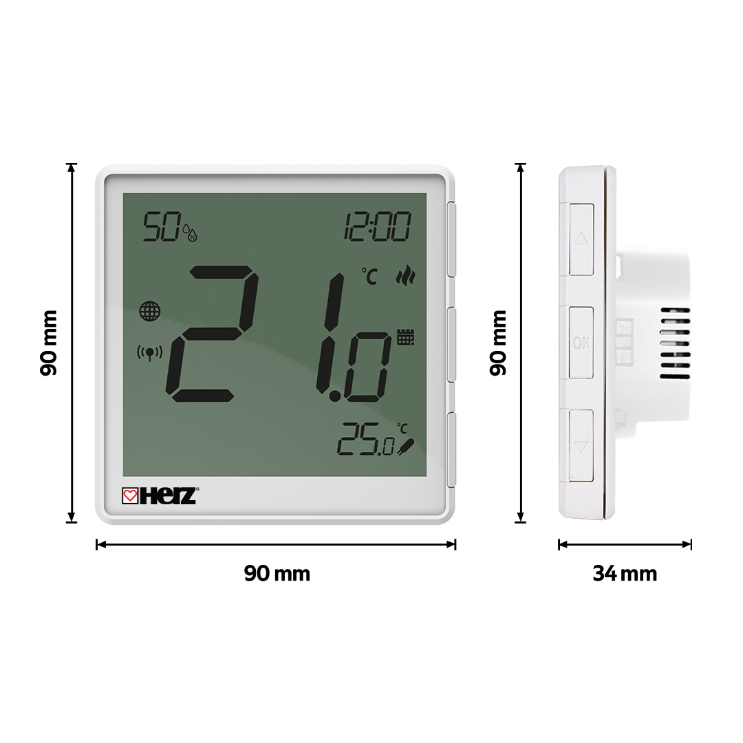 Термостат HERZ Thermiq призначений для систем підлогового опалення та може працювати як у режимі опалення, так і в режимі охолодження.